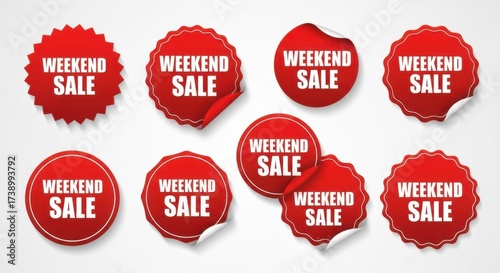 Vibrant red weekend sale sticker variations for promotional advertising needs