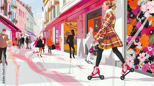 Vibrant Rollerblading: Woman Gliding Through a Lively City Scene