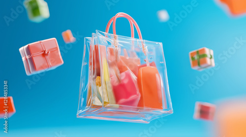 Vibrant Shopping Bag with Floating Gifts – Cyber Monday and Black Friday Concept for Online Shopping, Retail Discounts, and Holiday Sales