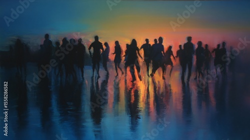 Vibrant Silhouettes at Sunset by the Sea Capturing the Essence of Joy and Togetherness in a Colorful Tableau