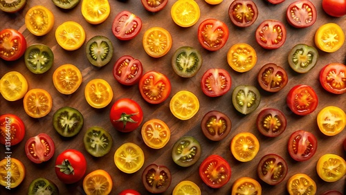 Vibrant Slices of Red and Yellow Tomatoes on Dark Background - Healthy Food Stock Photo