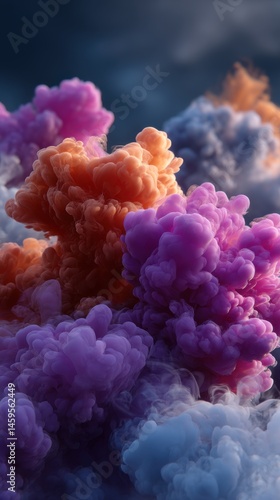 Vibrant Smoke Cloud Formations in Orange Purple and White Hues Ethereal and Abstract Art Smoke Effect