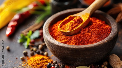 Vibrant Spices in Wooden Bowl with Spoon