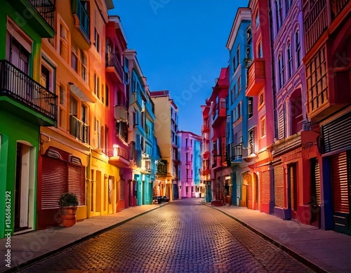 Vibrant street scene with bold colored architecture