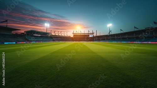 Vibrant Sunset at an Illuminated Stadium