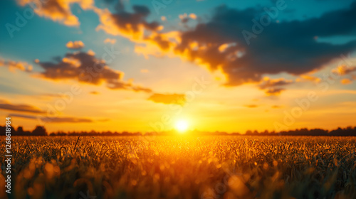 Vibrant Sunset over Golden Wheat Field
