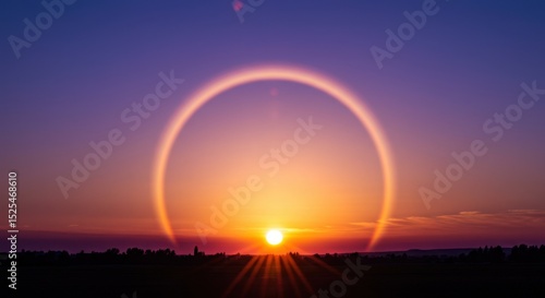 Vibrant Sunset with Halo Effect over City Skyline