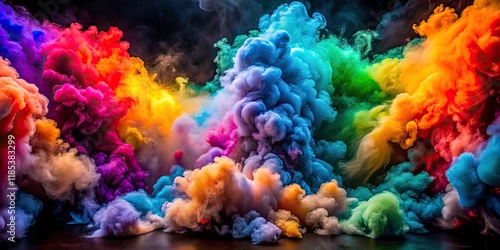 Vibrant, swirling smoke bursts in abstract artistry, a captivating explosion of color.