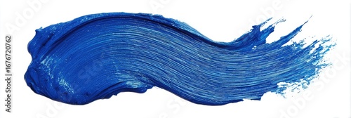 Vibrant, textured blue paint stroke on white background