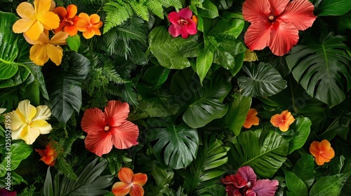 Vibrant Tropical Floral Arrangement with Exotic Flowers and Lush Greenery
