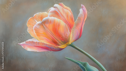 Vibrant Tulip Blossom in Soft Pastel Colors on Subtle Background