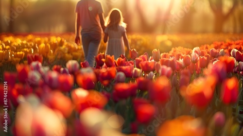Vibrant Tulip Field Adventure:Family's Colorful Floral