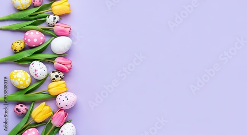 Vibrant tulips on pastel purple background for easter or spring