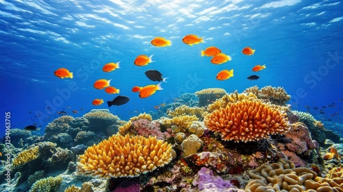 Vibrant Underwater Coral Reef Scene with Colorful Fish