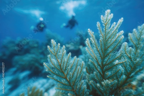 Vibrant underwater scene showcasing delicate seaweed with divers