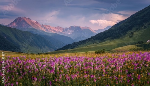 Vibrant Wildflowers Bloom Across Mountain Valley