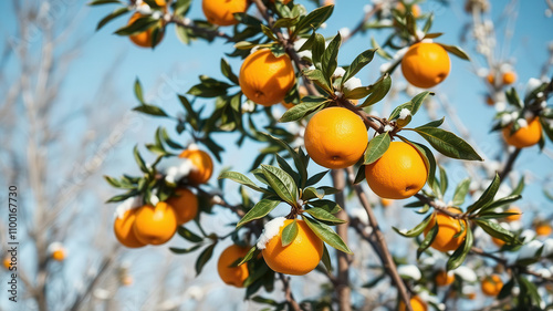 Vibrant Winter Citrus - Snow-Dusted Orange Tree in the Sunshine9