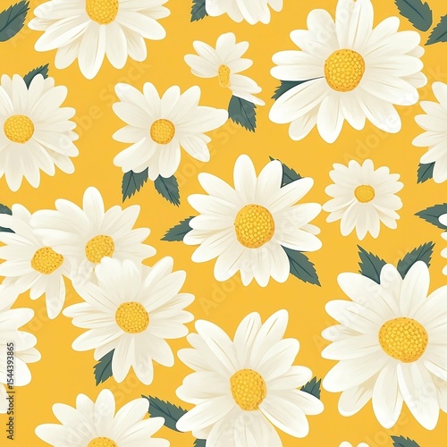 Vibrant Yellow Daisy Floral Pattern Seamless Texture Design for Fabric, Wallpaper, and More