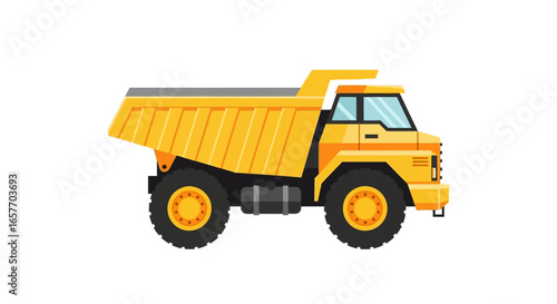 Vibrant yellow dump truck illustration showcasing heavy machinery and construction equipment in dynamic perspective