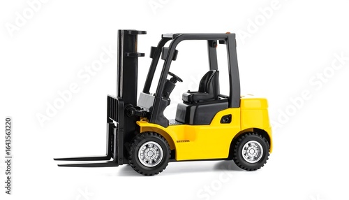 Vibrant yellow forklift truck isolated on a pristine white background studio shot