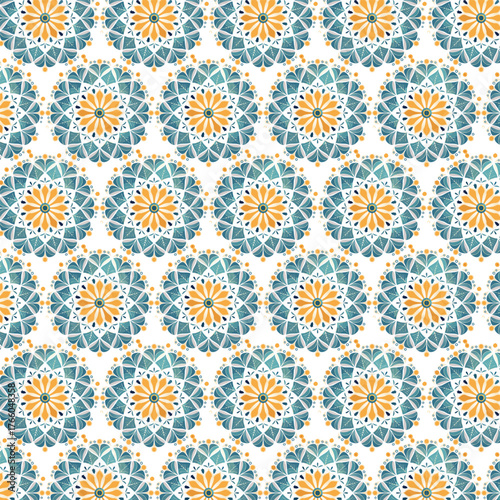 Vibrantly Tiled Teal and Marigold Moroccan Pattern Seamless Background