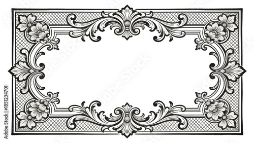 Victorian Engraved Frame in Black Ink Style