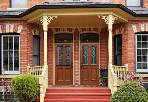 Victorian semi-detached house with large shared front porch