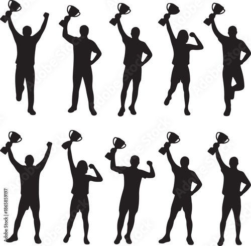 Victorious Athletes Holding Trophies Silhouette
