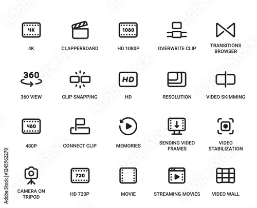 Video Editing Category Outline Pictogram Icons Set
