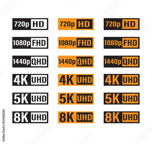 Video resolution mark. UHD black and white icon isolated. Video and tv size resolution icons.