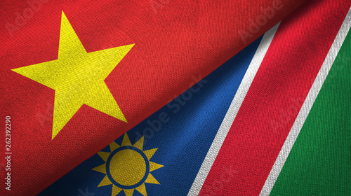 Vietnam and Namibia two flags textile cloth, fabric texture