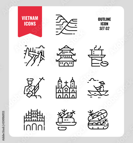 Vietnam line icon set 2. Include landmark, people, food, culture and more. Outline icons Design. vector