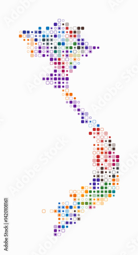 Vietnam, shape of the country built of colored cells. Digital style map of Vietnam on a white background. Small size rounded square blocks. Amazing vector illustration.