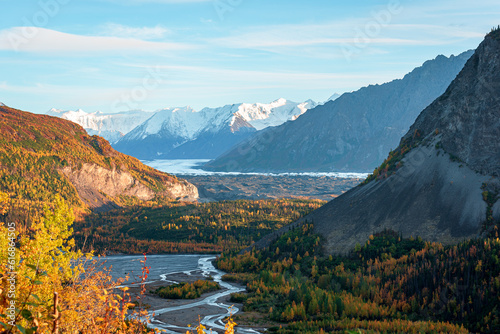 View of Matanuska River from highway , Alaska in fall season.