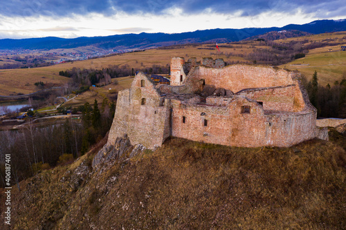 View of medieval Czorsztyn castle. Poland