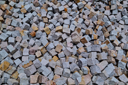 View of small cement bricks, wall texture, background.