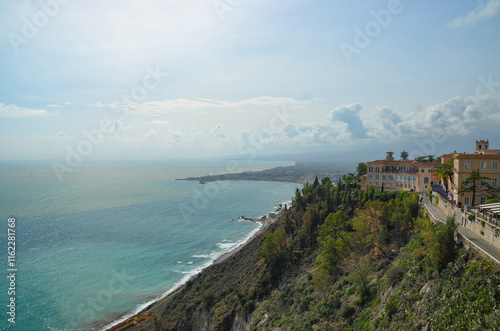 View of the Ionian Sea from the viewpoints in Taormina, Sicily