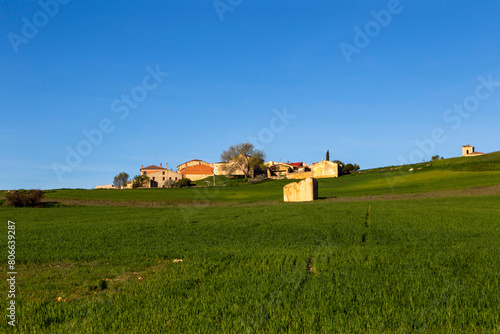 View of the town of Valdevacas de Montejo. Segovia, Castile and Leon, Spain.