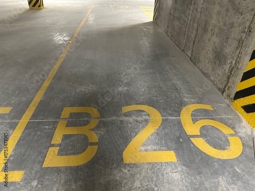 View of underground parking with dedicated spot, closeup