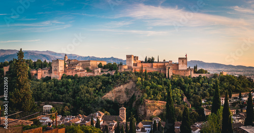 View on Alhambra at sunset, Granada, Spain
