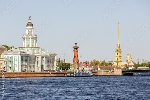 View on Kunstkamera museum, Rostral column, Peter and Paul Fortr