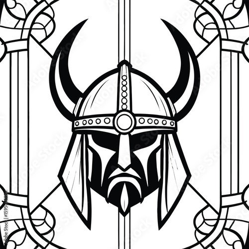 Viking Warrior Black And White Line Art For Coloring Books Graphic Designs And Historical Illustrations A Stylized Depiction Of Bravery And Strength Showcasing Norse Culture In A Minimalist