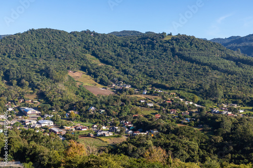 Village around forest and mountains