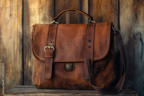 Vintage Appeal: Satchel Displayed Against a Rustic Brown Backdrop