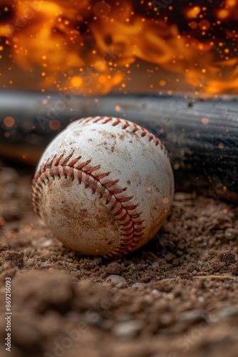 Vintage baseball in dramatic lighting