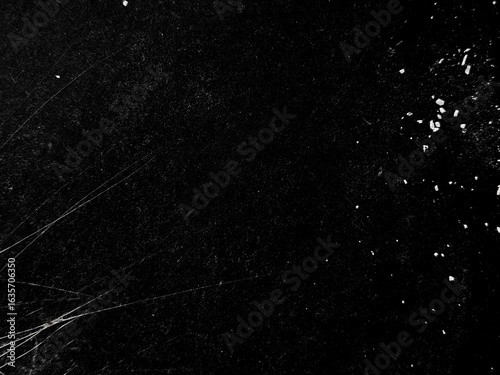 Vintage black grunge texture with white scratches and old film grain effect. White scratches and dust on black background with copy space.
