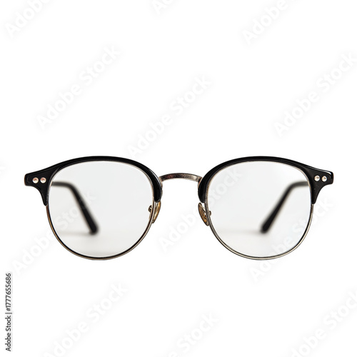 Vintage Black Rimmed Eyeglasses isolated on a transparent background