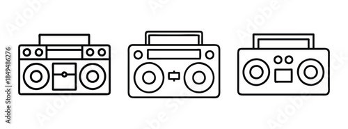 Vintage Boombox Line Art Illustrations for Retro Music Lovers and Design Enthusiasts