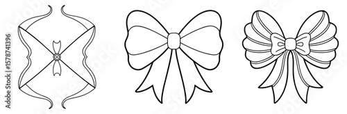Vintage Bow Outline - Coloring Book Page Line Art Vector