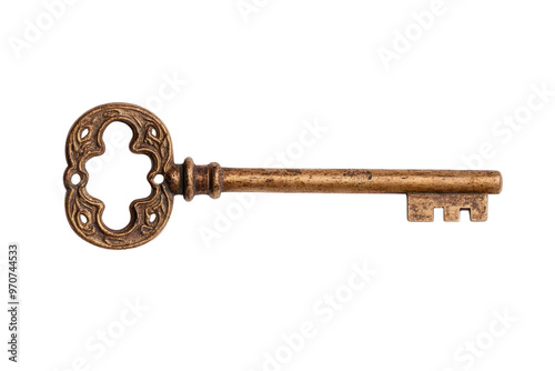 Vintage bronze key with intricate design, ideal for representing security, access, and unlocking potential.